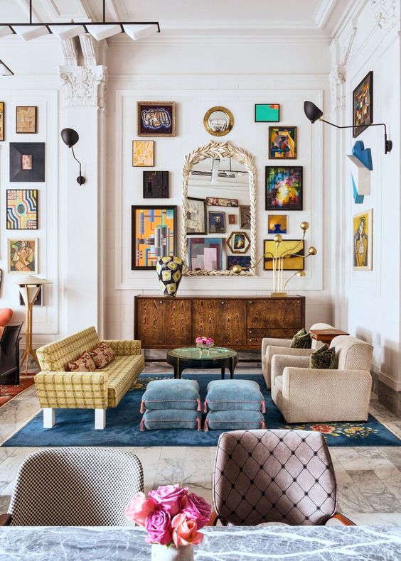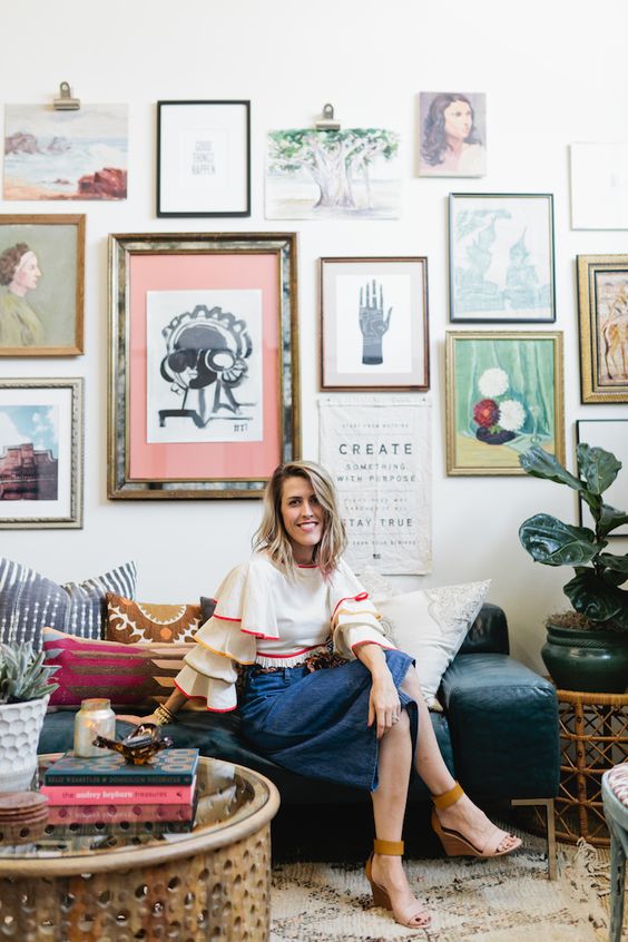 Czuję, że to jest taki czas, kiedy spotykają się we mnie wszystkie moje oblicza, wszystkie części osobowości integrują się i razem z nimi – wszystkie fazy kolorystyczne i stylistyczne, przez jakie przechodziłam łączą się w jedną całość. To dlatego chcę widzieć na co dzień zarówno ład, jak i ekspresję, chcę obcować z kreatywnością, ale i doświadczać zorganizowania. W życiu i w pracy – chcę puścić wodze fantazji, bawić się, chcę być wesoła, ironiczna, świadoma i dojrzała, ale nie przejmować się za dużo, przymykać oko, brać z życia pełnymi garściami, mieć odwagę, tworzyć i tak – właśnie dlatego potrzebuję otaczać się kolorowymi poduszkami i eklektycznym zbiorem plakatów. Patrzcie, inspirujcie się i pokazujcie środkowy palec algorytmom, styczniowym dołom, niebieskim poniedziałkom, zimowym pluchom i życiowym nizinom!