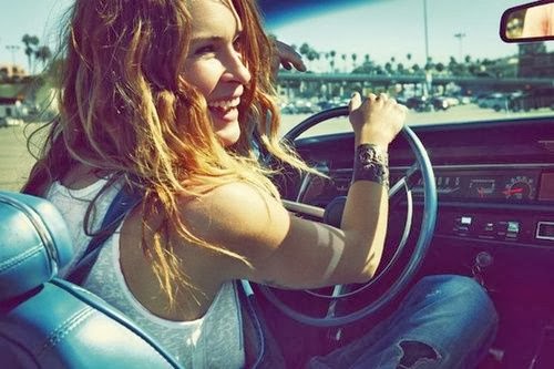 Wyidealizowałam sobie to prowadzenie samochodu przez ostatnie lata, stąd te opalone piękności z rozwianym włosem na zdjęciach poniżej. Nie martwcie się, wiem, że prawo jazdy nie wydłuży mi nóg, ani że nie pohulam w styczniu w szortach, codzienność kierowcy w kraju postkomunistycznym, w strefie klimatu umiarkowanego to jednak korki w deszczu i dziury w jezdni. Ja i tak będę się cieszyć z prowadzenia samochodu jak te wszystkie laski, choć w długich spodniach i w deszczu, choć po wodę i kartofle do sklepu, a nie na babski roadtrip. Już widzę oczami wyobraźni, już czuję tę wolność, przez łąki, przez pola pędzi fasola normalnie.