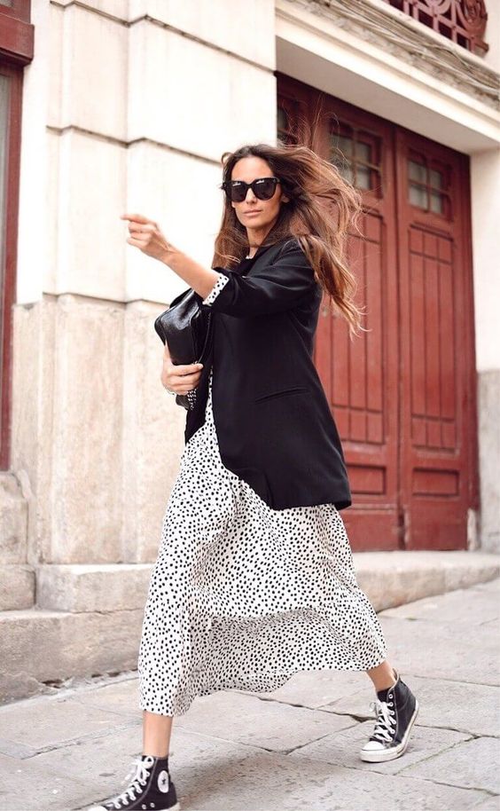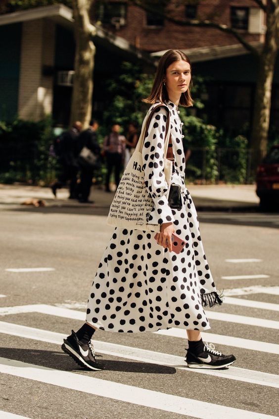 Dziś zebrałam dla Was inspiracje, przedstawiające moje ulubione wiosenne, miejskie stylówki: luźne sukienki i rozkloszowane spódnice 3/4, a do tego: trampki, tenisówki, sneakersy, adidasy. Sportowe buty i kwiatki, groszki czy paseczki – przepadam za tym połączeniem! Znalazłam też buty, ciuchy i akcesoria do takich zestawów w polskich sklepach internetowych. I tak, one zwykle są droższe od sieciówek, więc nie namawiam, by w odruchu patriotycznego obowiązku pozbawić dzieci prezentów od zająca. Wiele z tych marek jednak dziś ratuje się promocjami, to może być więc dobry moment, by upolować coś jakościowego taniej. Dodatkowo, mam dla Was rabat 20% na cały asortyment Pan Pablo, z którego są wszystkie prezentowane tu buty i część akcesoriów.