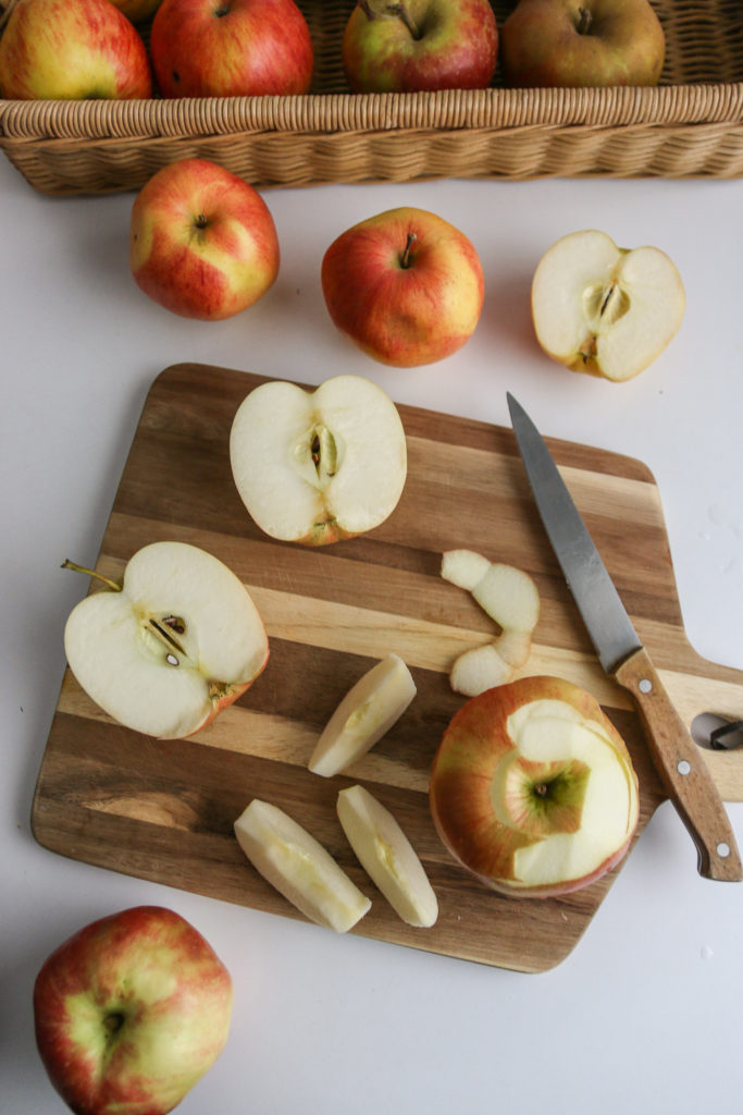 - 5 jabłek, najlepiej część winnych, jak szara reneta, część słodszych
