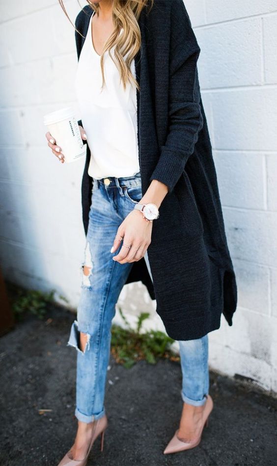 Czyli długi kardigan albo cienki płaszcz. Uwielbiam takie uniwersalne okrycia! Znowu – rzecz do wszystkiego. Najlepiej pasuje do spodni, ale w zależności od dodatków może stanowić element stroju bardziej szykownego albo całkiem na luzie. Z tiszertem i trampkami idealna na uczelnię czy do parku. Z koszula i szpilkami lub skórzanymi mokasynami tworzy świetny strój do pracy. Nie wyobrażam sobie wiosny bez takich płaszczyków.
