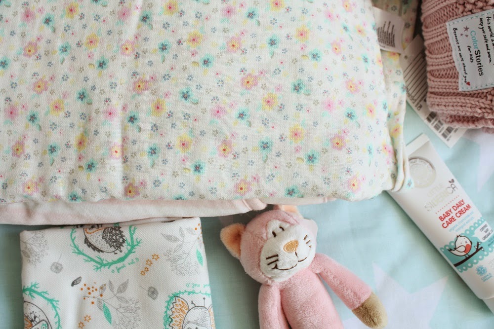 - Pieluszka bawełniana w pastelowe kwiatki – H&M Home (kupowana w lipcu)
