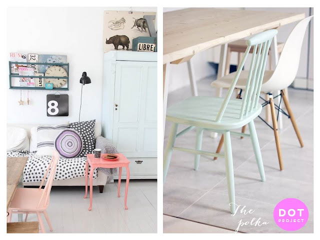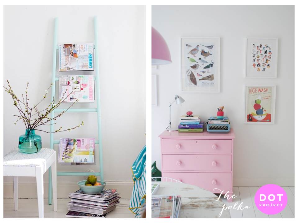There are pastels and pastels, I’m not talking about an overdecorative style here, Provence laces or English roses (although they can be pretty when used with moderation). But my favourite pastel style uses the freshness of these colours mixed with the white and simple forms. Mint, pink and lavender in eclectic spaces, accompanied by the simplicity, a bit of retro and accents of black – these are the rooms, the colours and forms of my dreams.